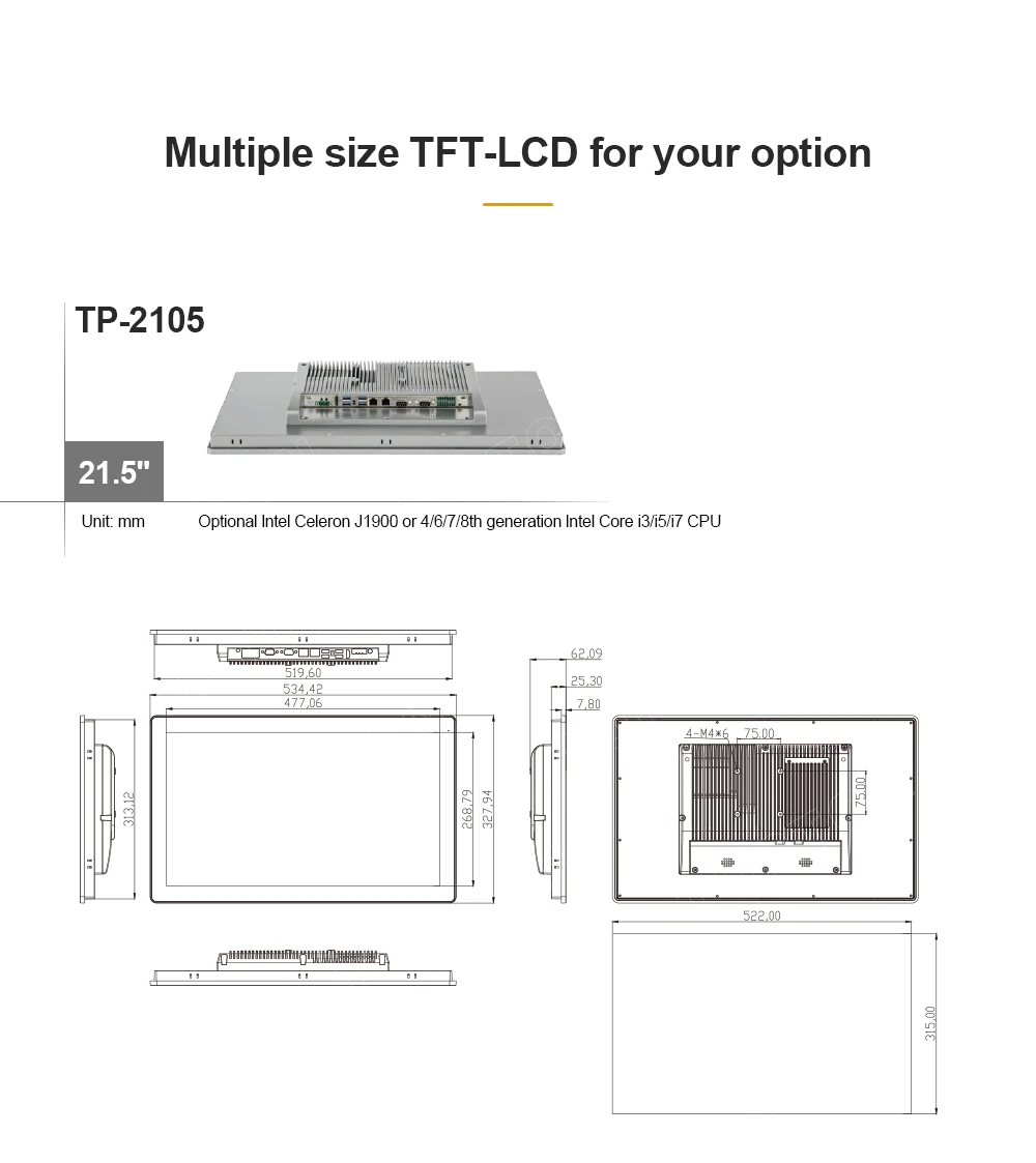 - Capacitive Touch Screen IP65 level waterproof and dustproof, support Ten-point sensitive touch;