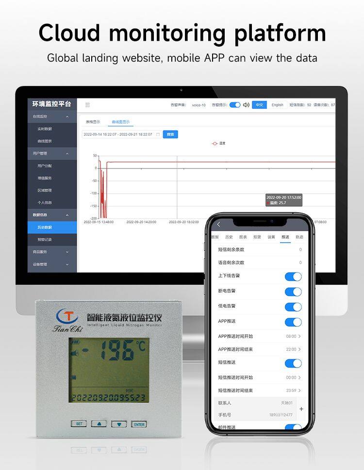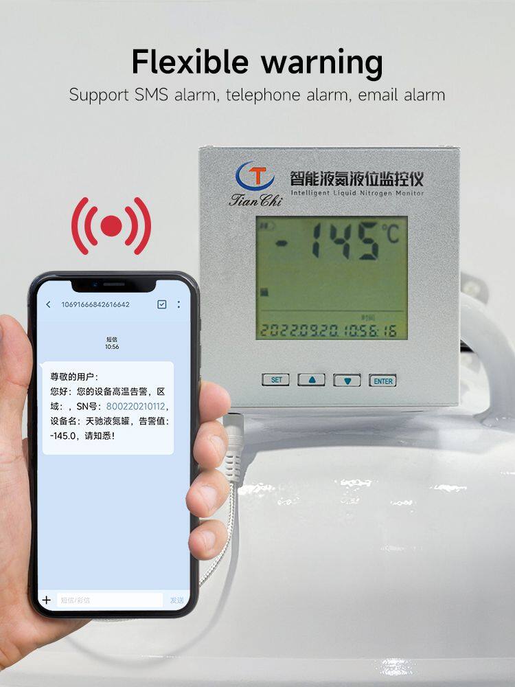 The liquid nitrogen level monitor supports SMS and email dual alarm mechanisms. Once an abnormal situation is detected (such as temperature exceeding the set range, low battery, etc.), an alarm will be sent immediately to ensure that the problem is handled in a timely manner.