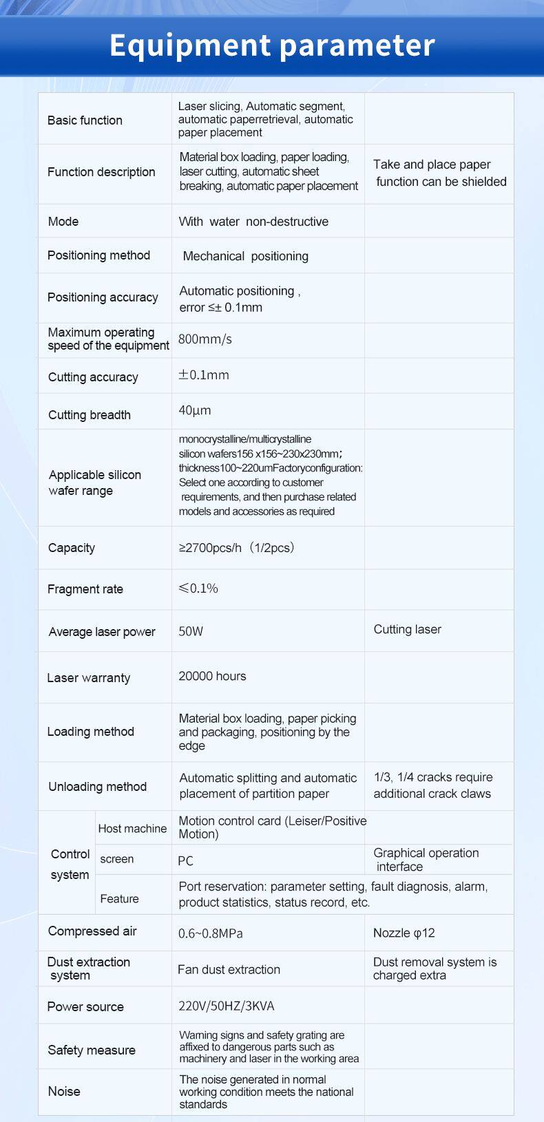 Straight out laser slotting Water spray assisted cracking No scratches on the surface