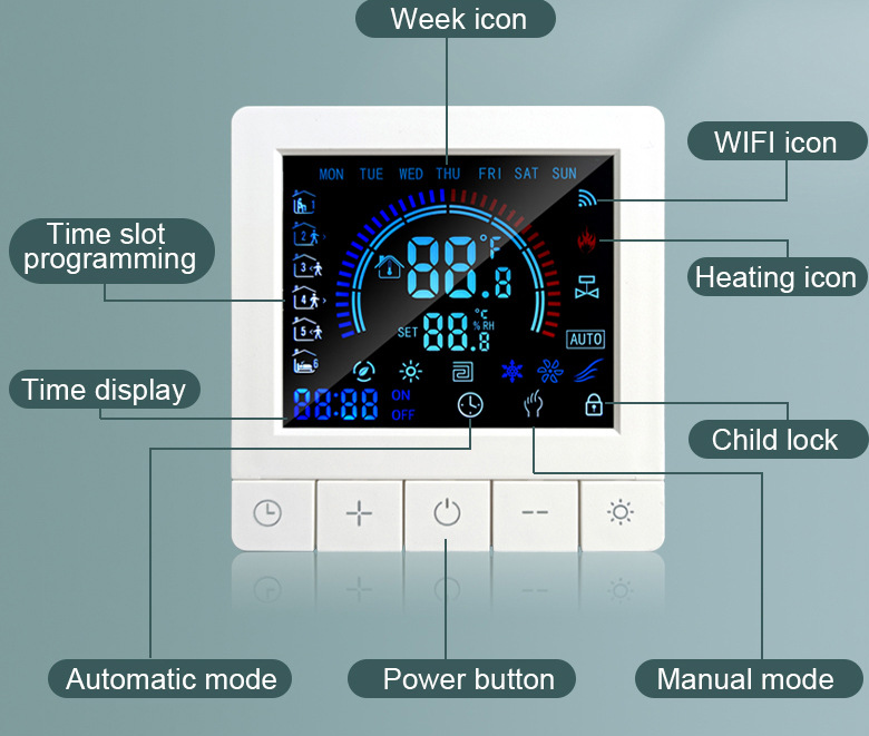 New Touch Screen WiFi Underfloor Heating Temperature Controller Graffiti Remote App Electric Underfloor Heating (wechat:13510231336)NegotiableMOQ: 2000 Pieces
