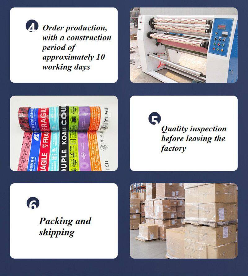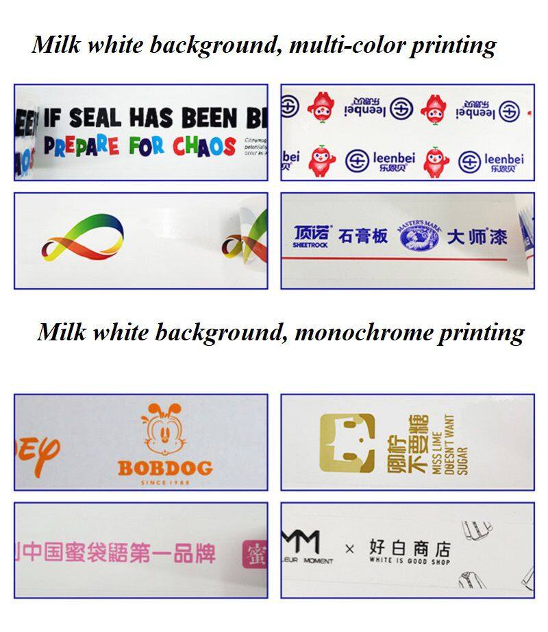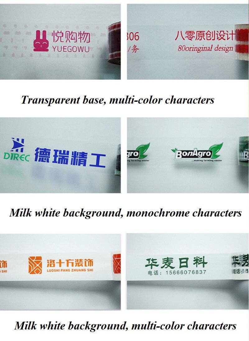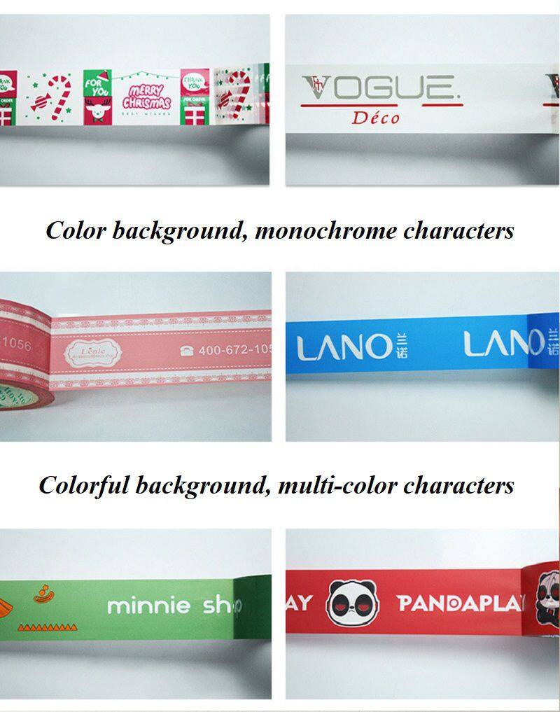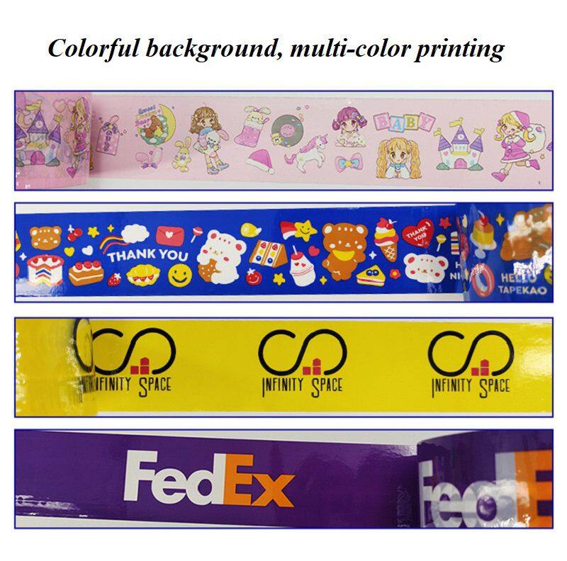 Customizable, no restrictions on base color, no restrictions on length, width, and height, free design, electric engraving printing, pure butyl ester adhesive, alcohol ink, clear color, 28u film+24u adhesive, total thickness of 52u (this is the thickness of commonly used transparent tape, other tape thicknesses are 40u -65u).