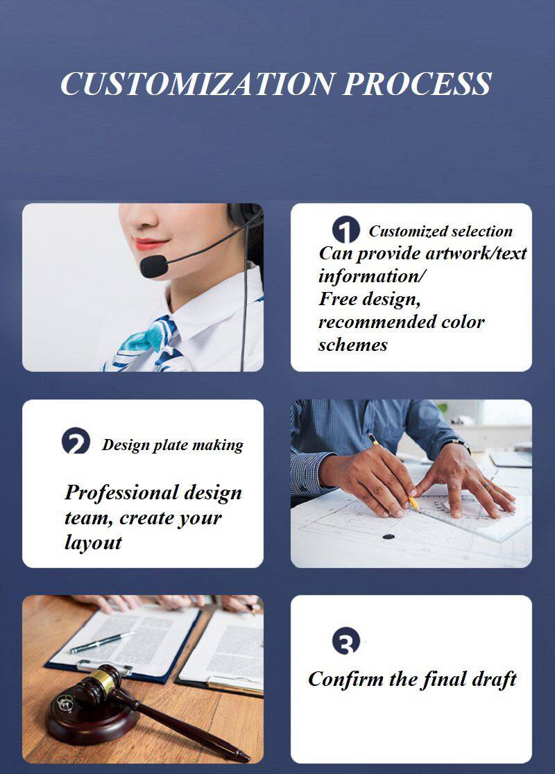 When customizing: Please select a color from the brochure, specify the desired width/length, and send us the content of the logo to be printed. We will design a sketch according to your requirements and confirm with you repeatedly before organizing production.