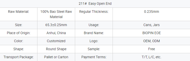 Customized 209# 63mm TFS Easy Open Cover Tinplate Metal Cap Easy Open Can LidUS$ 0.018 - 0.03MOQ: 200000 Pieces
