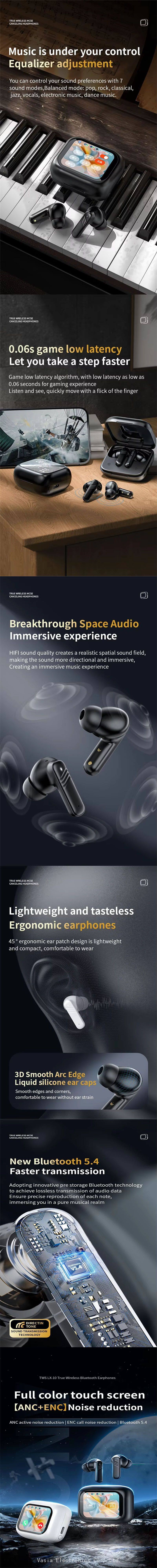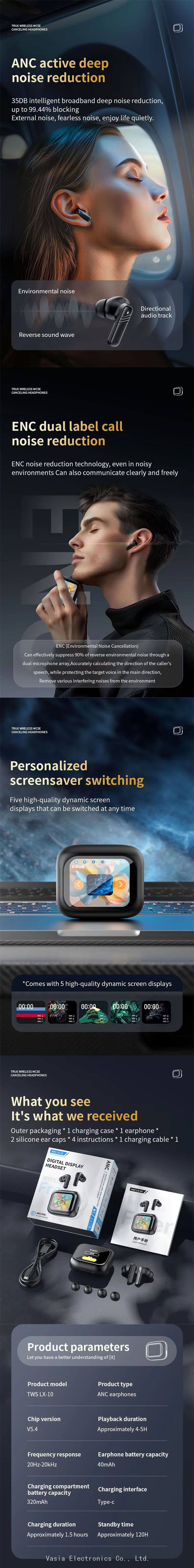 ANC Earphone LCD Full Touch Screen Wireless Earbuds Gaming In-ear Wireless Earphone ANC ENC Touchscreen Headphone