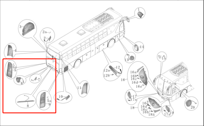 ZK6998 Luxury Bus Body Kit Rear Light 4133-00072 HJH-054-LH Replacement Tail Lamp for Bus Led Lights 24v for BusesUS$ 39 - 39MOQ: 1 Piece