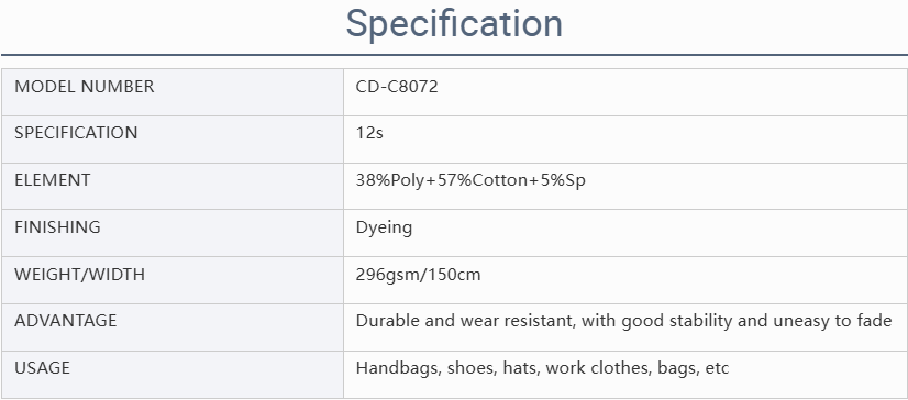 Plain Woven 12S Stretchy 38%Poly+57%Cotton+5%Sp Canvas Fabric for Workwear Garments