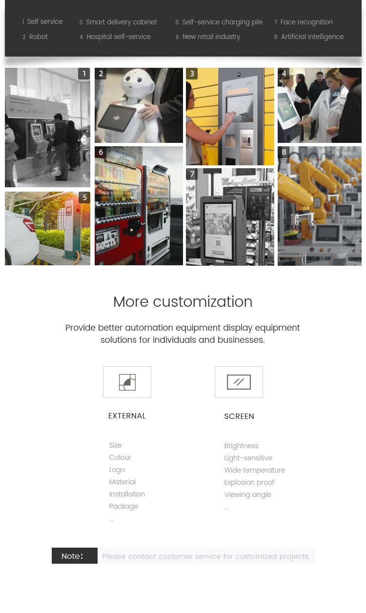 Equipment use | Application field | Military equipment, aerospace equipment, rail transit/communication, professional photography display, smart supermarket, smart robot, smart meeting room, factory assembly line/POS cash register, car GPS, elevator entrance, commercial office building, exhibition site, etc. occasion |