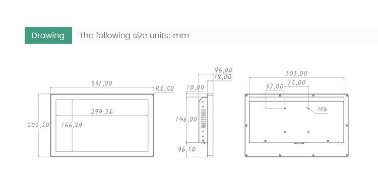 - Embedded Front Panel IP65 Waterproof Monitor 19 Inch Full HD 1024*768 Touch Screen Monitor