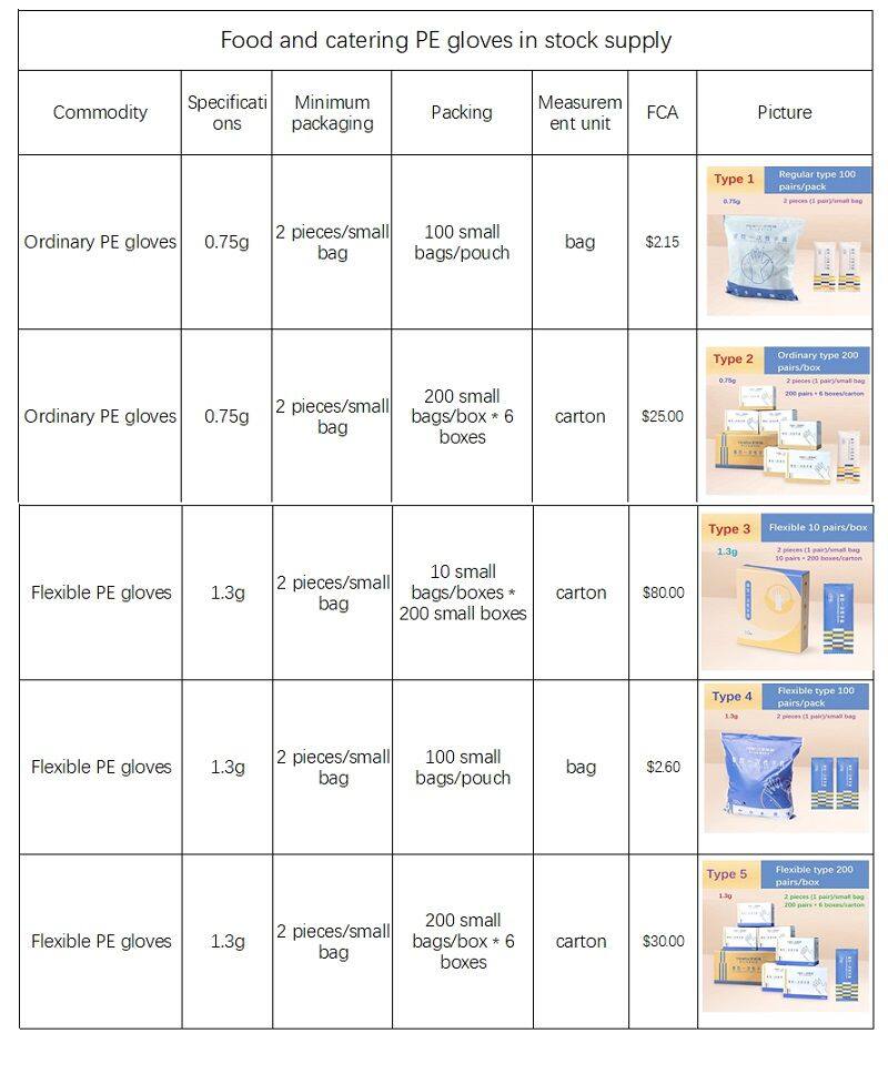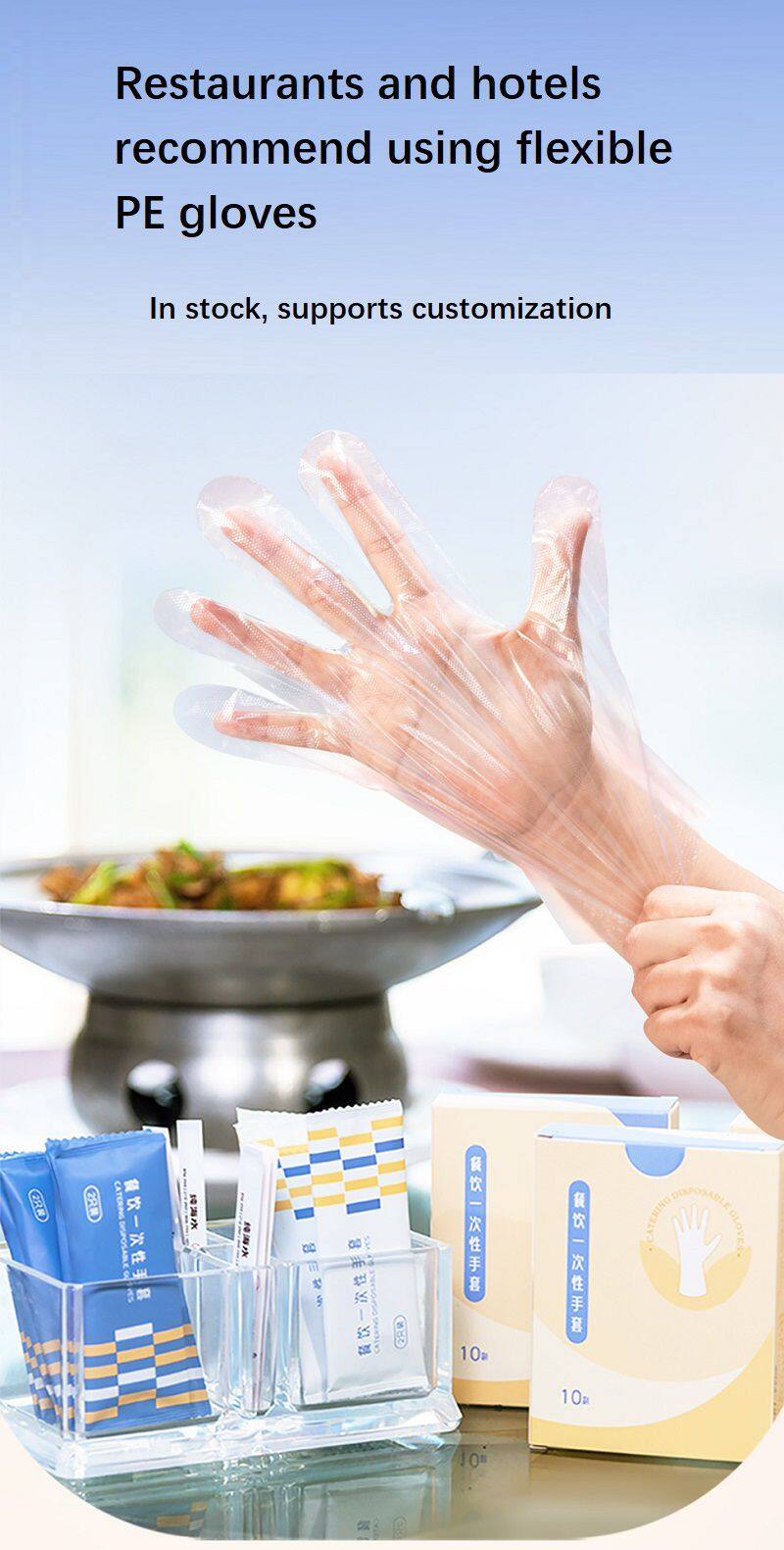 PE gloves in stock, individually packaged, food grade, suitable for restaurants and hotels