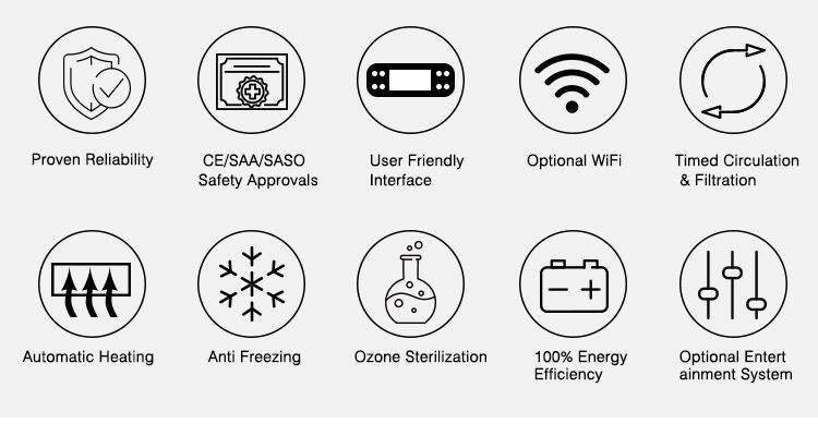 Seating (spa tub) | 1 X Swim area 4 X Seats | Heater | 1x 3KW | |||