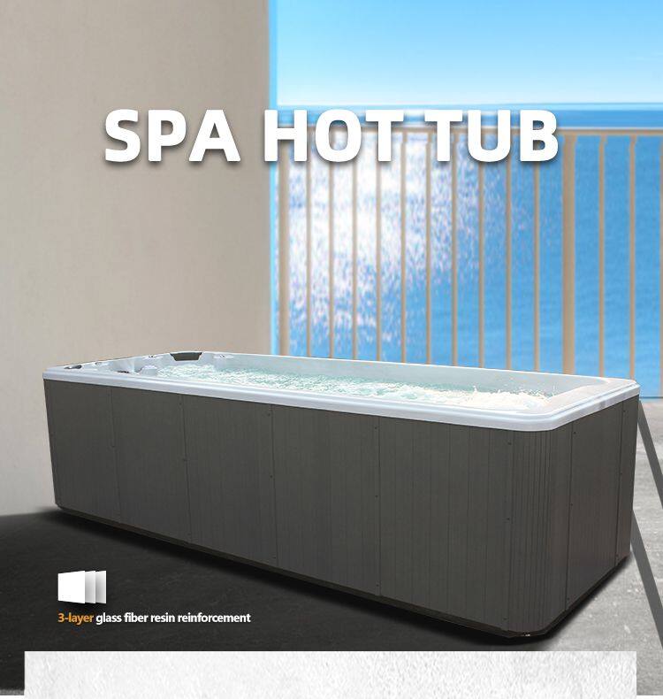 Modern Design 7m Swim Spa Low Height Semi-Ingroun Rectangular Shape Square Pattern 6-People Capacity Acrylic Material Villas