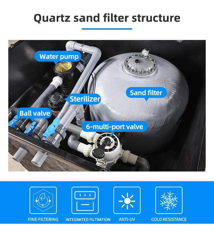 Luxury Complete Filtration Disinfection System for Swimming Pools Fiberglass Underground Buried Filter Top Mount Water Output