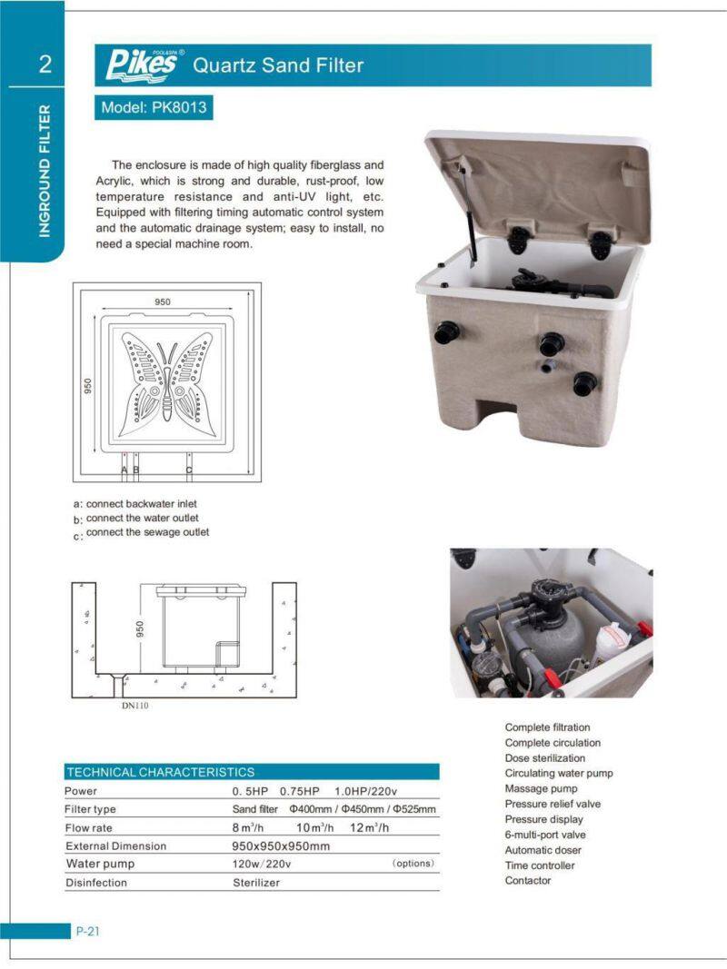 Home > Products > In-ground Pool Filters > Factory PK8013 Top Mount Disinfection System Underground Piscina Pool Filtration for Private Villa Efficient Water Output
