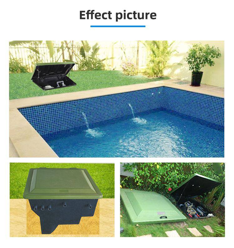 The in-ground filter is crafted from fiberglass and polyvinyl chloride, featuring a stylish and durable design. It eliminates the need for a machine room, reducing construction and maintenance costs while ensuring easy operation. Manufactured in accordance with swimming pool specifications and standards, this filter box has a medium flow rate. Its green upper cover blends harmoniously with the surroundings.