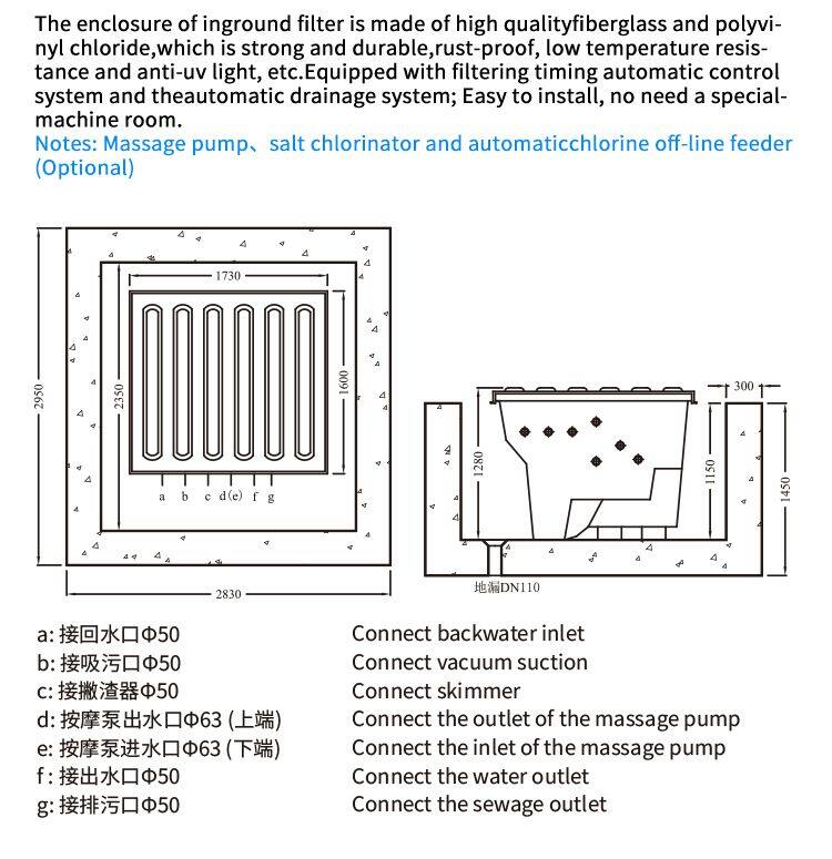 Factory PK8018 Underground Piscina Pool Filtration System With Disinfection System For Private Villa Piscina Pool