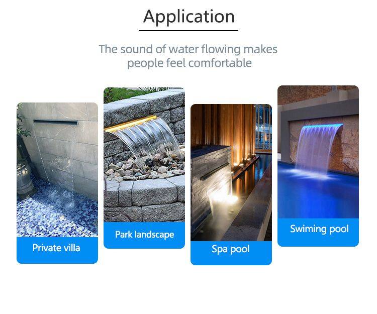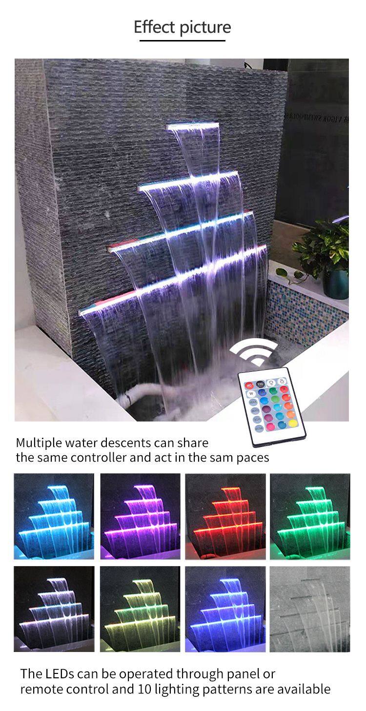 Factory Price Outdoor Garden Water Fountain Piscine Acrylic Water Descent Led Light Pool Waterfall For Sale