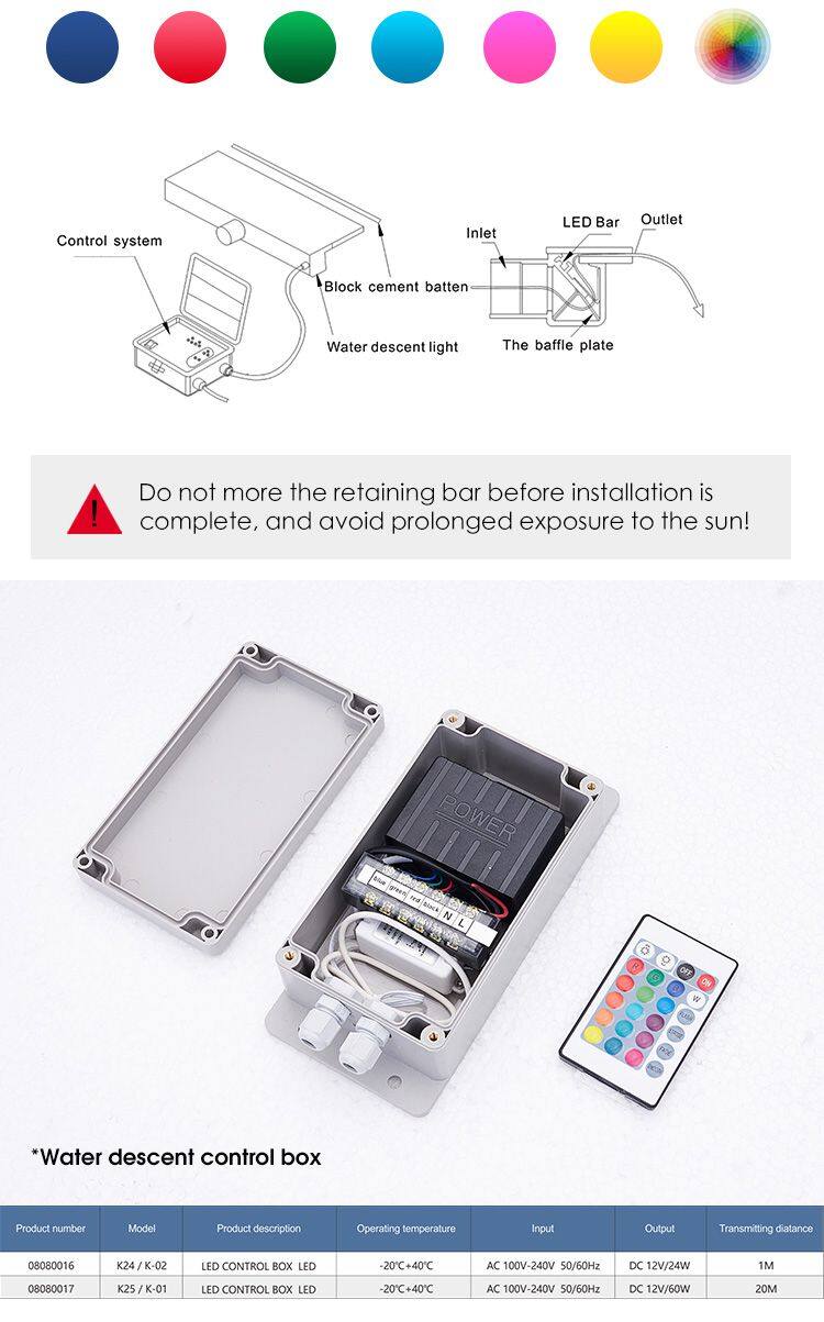 Pikes Swimming Pool Water Descent Waterfall Fountain With Valve LED Lights WD300-25-LED