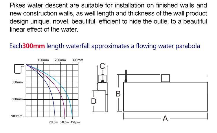 Acrylic Water Blade Curtain Outdoor Swimming Pool Waterfall Water Feature Stainless Steel Fountain Cascade Sheer Descent