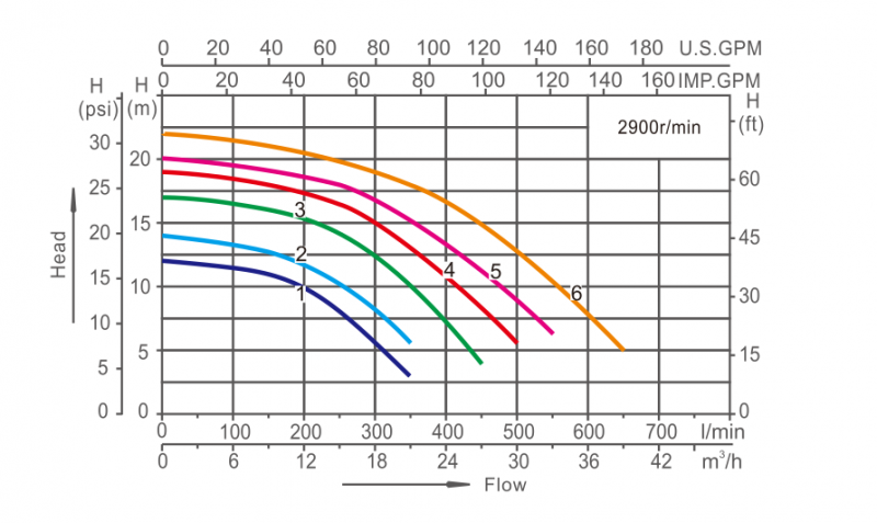 Model | Power(P1) | Amps(220V) | Qmax(mm) | Hmax(mm) | Curves | Packing Size | Qty/20' | ||
