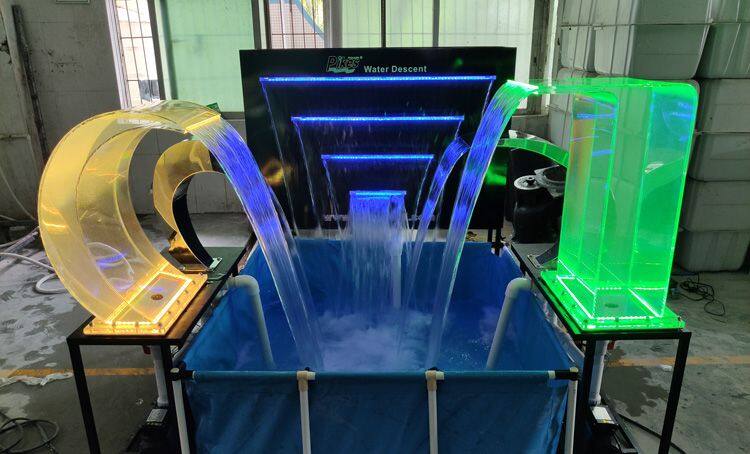 8 mm Thickness Acrylic Waterfall Swimming Pool Fountain Colorful LED Light Waterfall