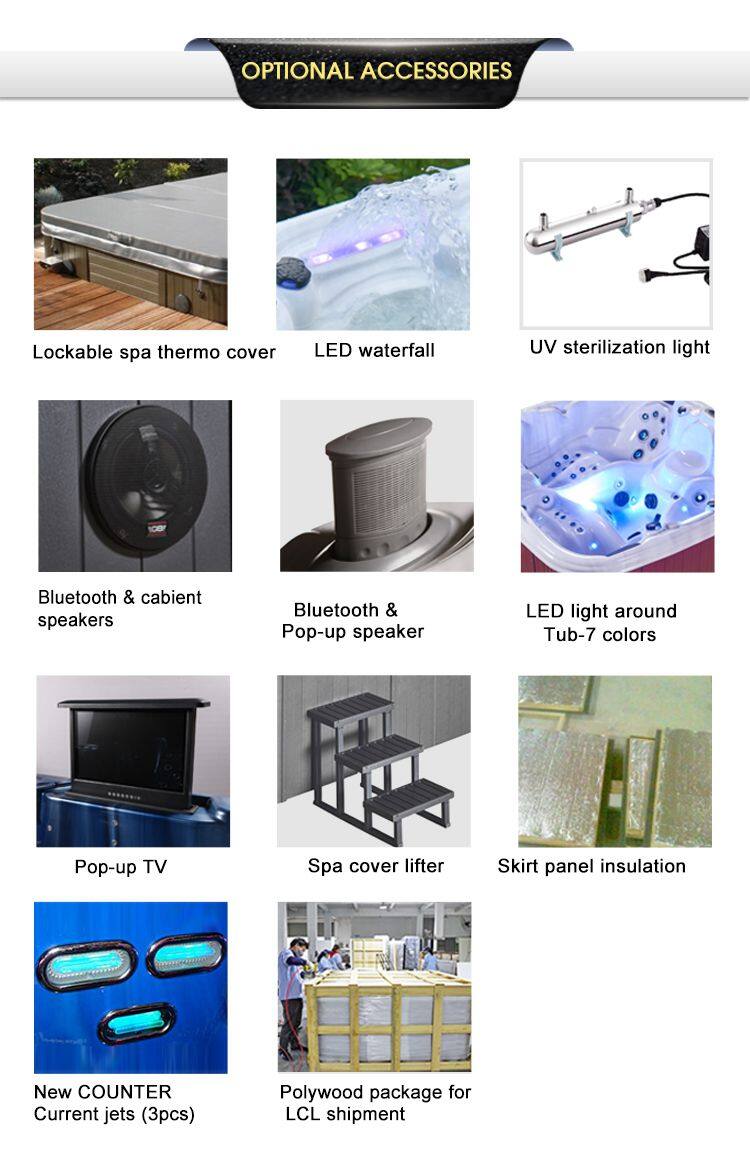 - Home Use 3 Person Seats SPA Hot Tub High Quality Massage Bathtub Stainless Steel Fiberglass Hot Tub With Jets LED Light