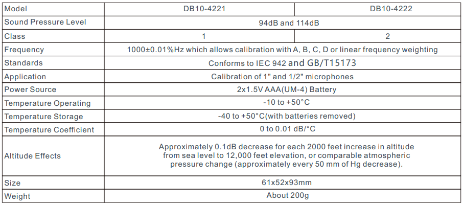 Home > Products > Sound Level Meter > Sound Level Meter Calibrator DB10-4221