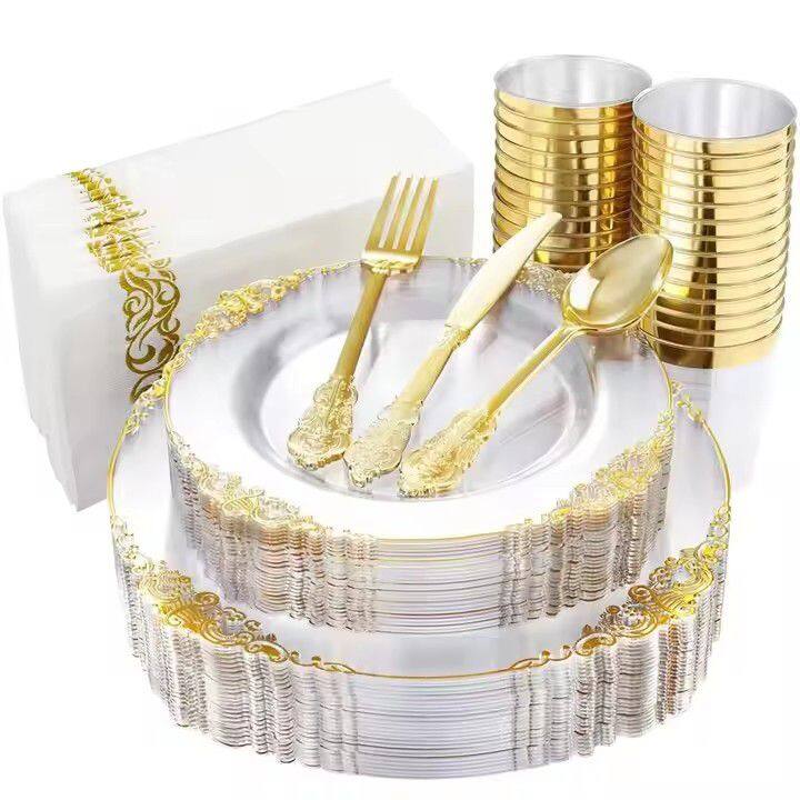 High Quality Durable Disposable Plastic Plates With Gold Rim Silverware Everyday Commercial Use-for Restaurants HotelsUS$ 0.89 - 0.90MOQ: 50 Pieces