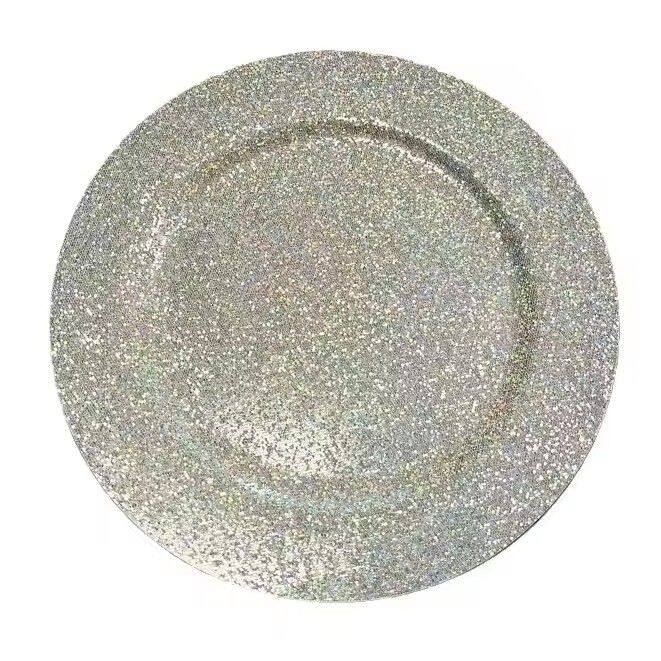 Wedding Table Decorate 13inch Plastic Shiny Sliver Charger Plate Solid Pigmented Dishes