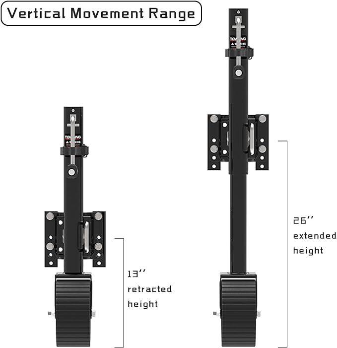 8-inch Wheel Trailer Jack, 13" Vertical Movement, 2000 Lbs, for RV, Boat, Trailer and More, Black