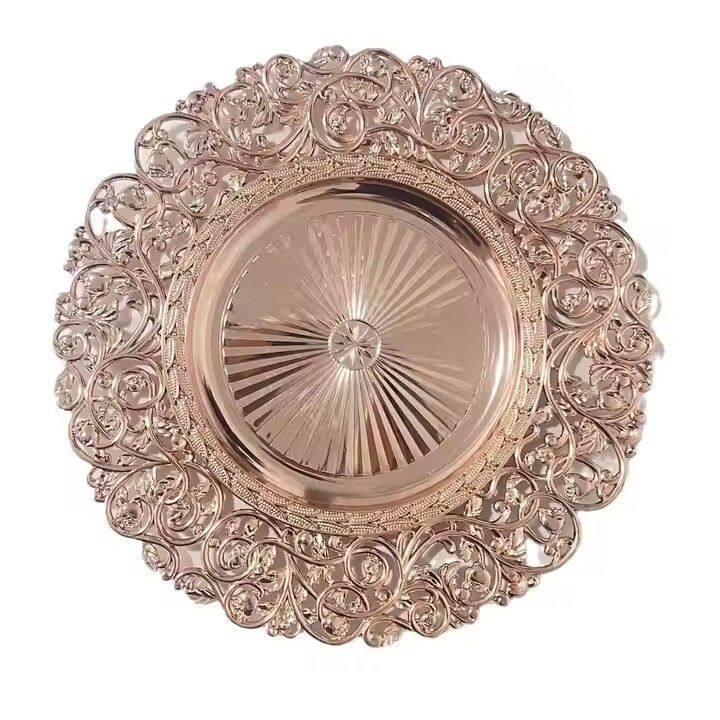 High Quality 33cm Silver Rose Gold Elegance Disposable Plastic Charger Plates for Wedding Hotel DecorationUS$ 1.20 - 1.26MOQ: 50 Pieces