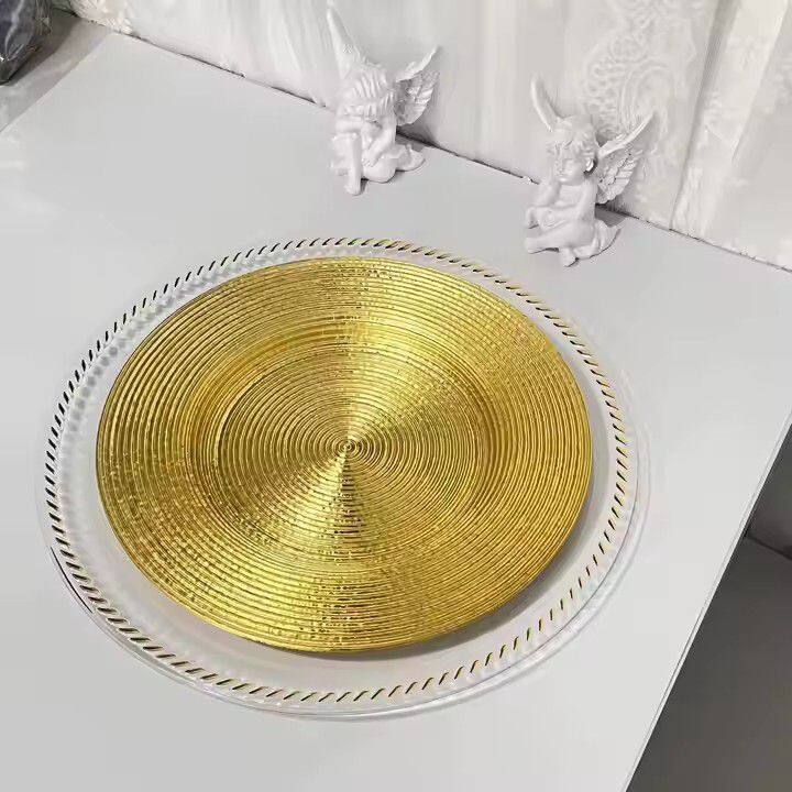 Transparent Plastic Custom Round Gold Charger Plates for Wedding Decoration and Banquet Decoration