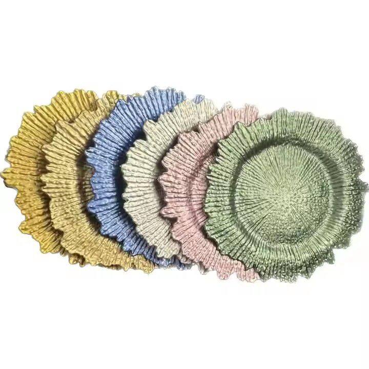 Wholesale Round Transparent Plastic Reef Silver Rose Gold Rim Beaded Clear Charger Plates WeddingUS$ 1.20 - 1.26MOQ: 50 Pieces