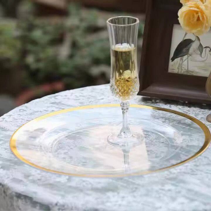 - Wholesale Bulk Clear Plastic Charger Plate With Gold Rim