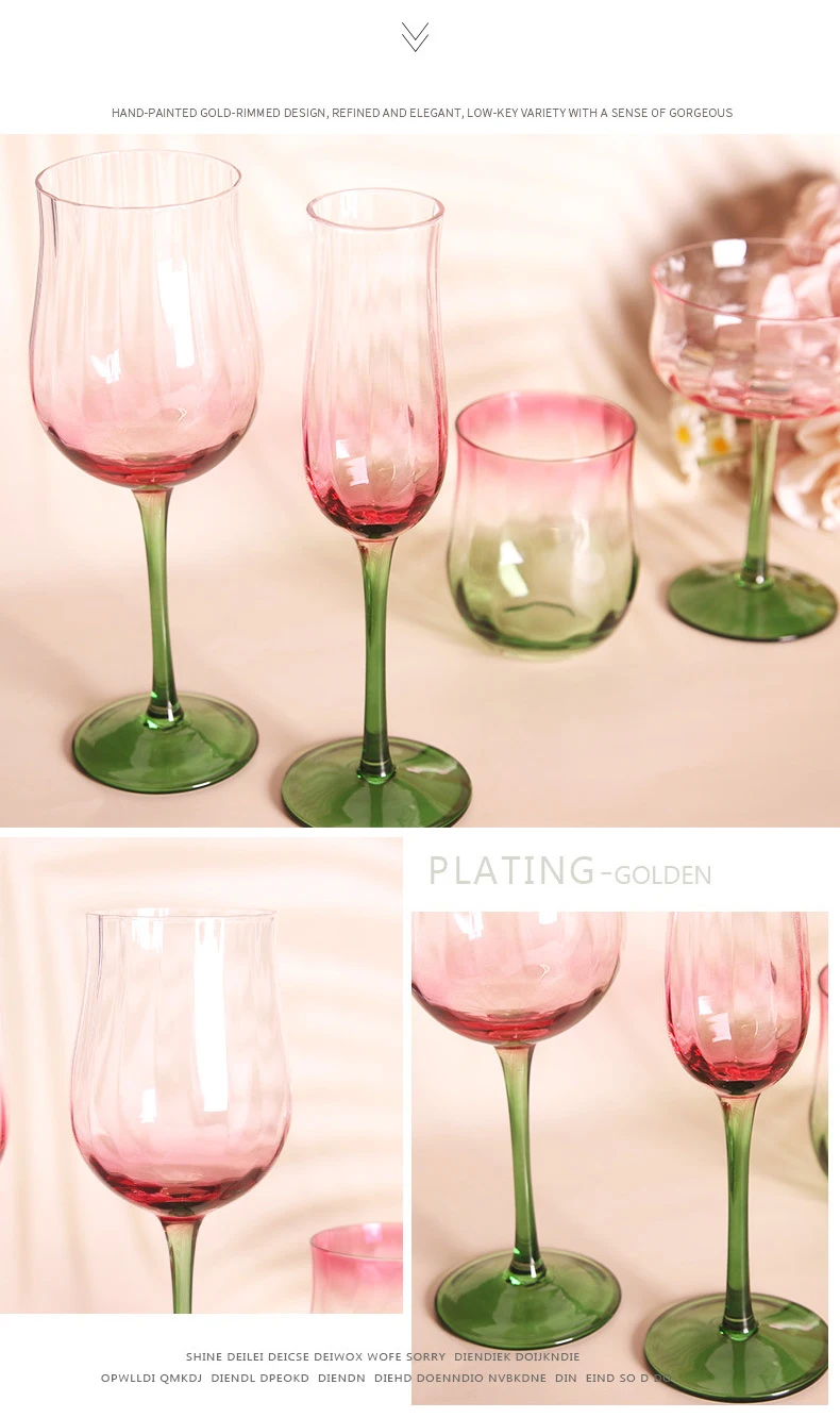 Creative Vintage Tulip Wine Glass Hand Blown Red Gradient Tight Edge Goblet Crystal Wine Glass