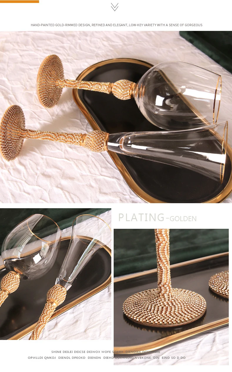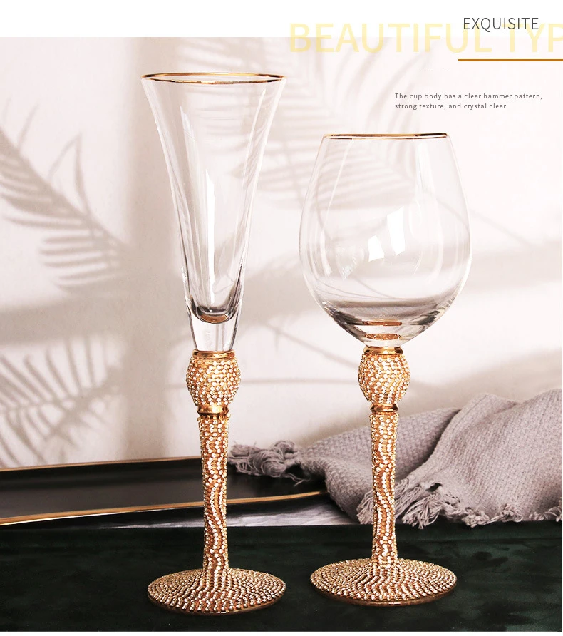 New Style Crystal Glassware Red Wine Glass Cup With Gold Edge Diamond Inlay
