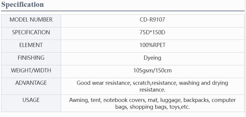 Eco-friendly GRS Woven 75D*150D 3/1 Twill 100%RPET Recycled Polyester Oxford Fabric for Luggage Bags