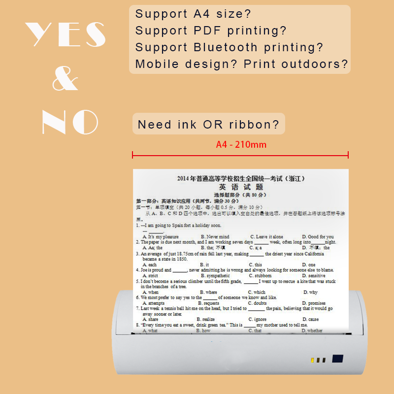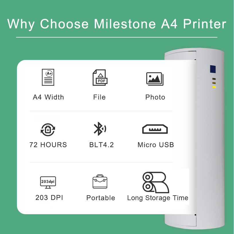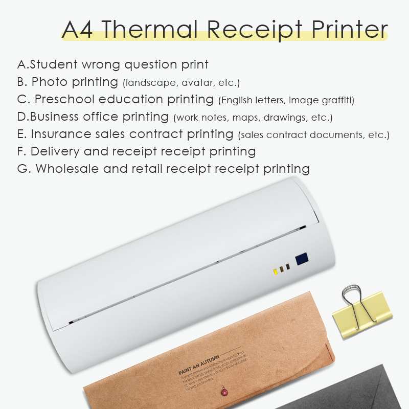Mini Portable Bluetooth A4 Thermal Printer Connect Phone and Computer Use