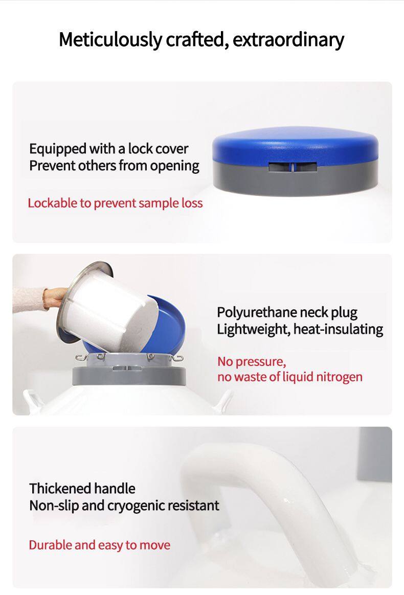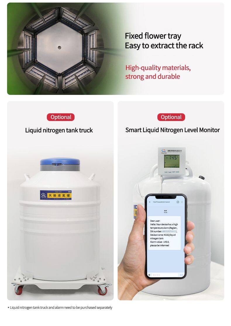 The tank body adopts a multi-layer insulation vacuum design, which can reduce the impact of external temperature on the internal environment and keep the liquid nitrogen at a low temperature, thereby better protecting the integrity of the sample.
