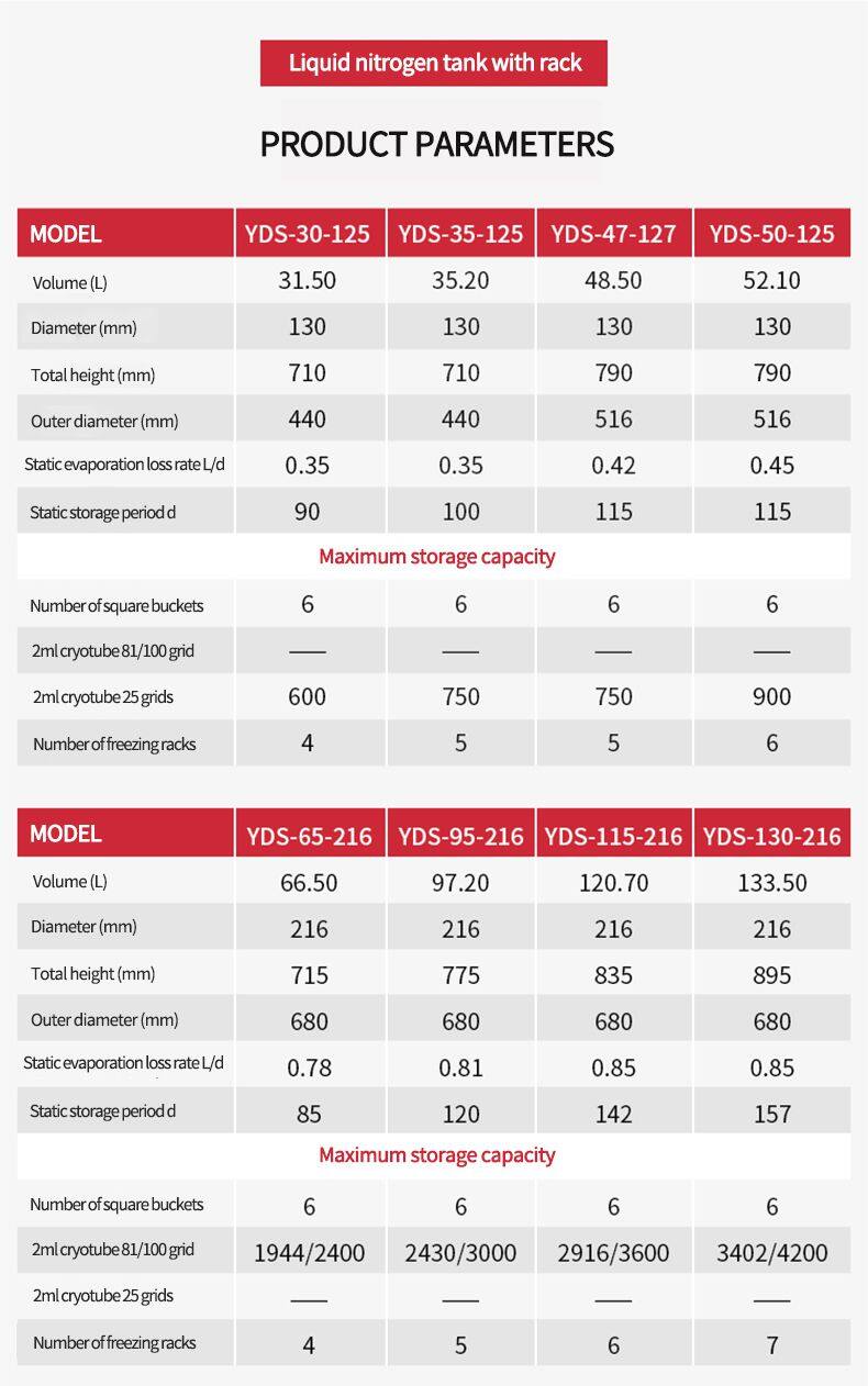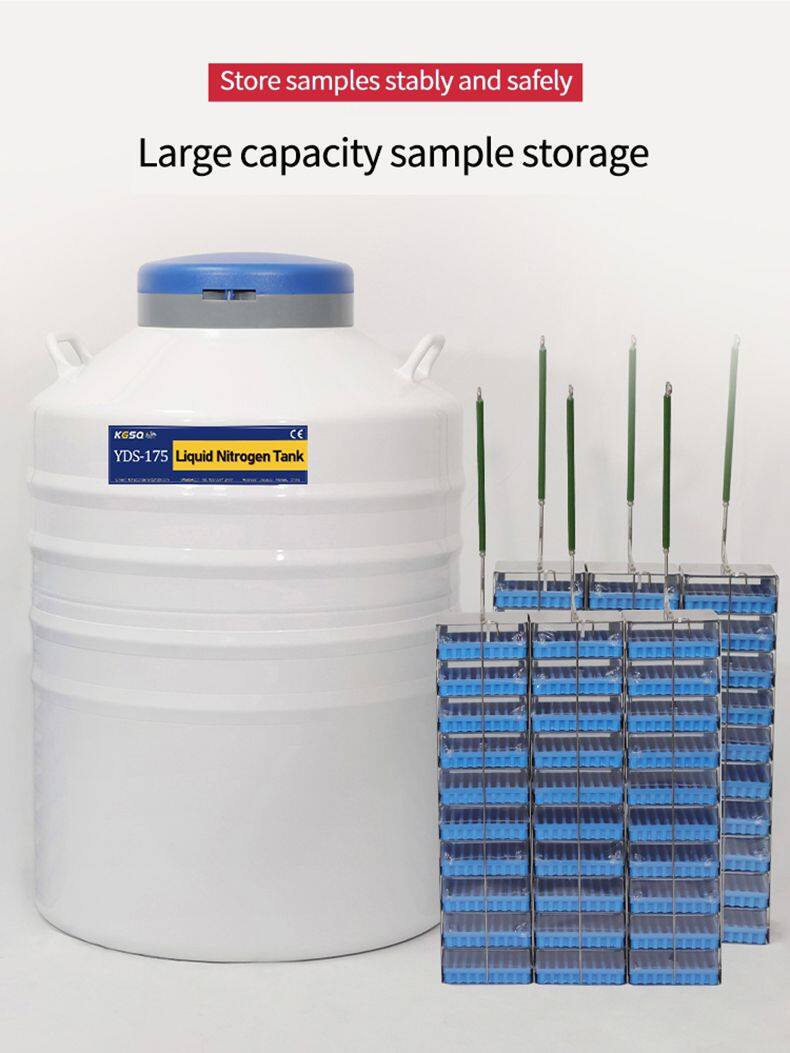 The cell storage liquid nitrogen tanks used in the laboratory are made of aviation aluminum, which is light in weight, takes up less space, has the advantages of low liquid nitrogen volatility and long-term sample storage. Its capacity ranges from 30 liters to 175 liters. Each cell storage tank is equipped with 6 cryopreservation racks and PC cryopreservation boxes adapted to the number of cryopreservation racks. It can accommodate up to 6,000 2mm or 1,800 5mm cryopreservation tubes, which can flexibly adapt to the needs of laboratories of different sizes, greatly improve the efficiency of sample management, and optimize the sample storage and access process.