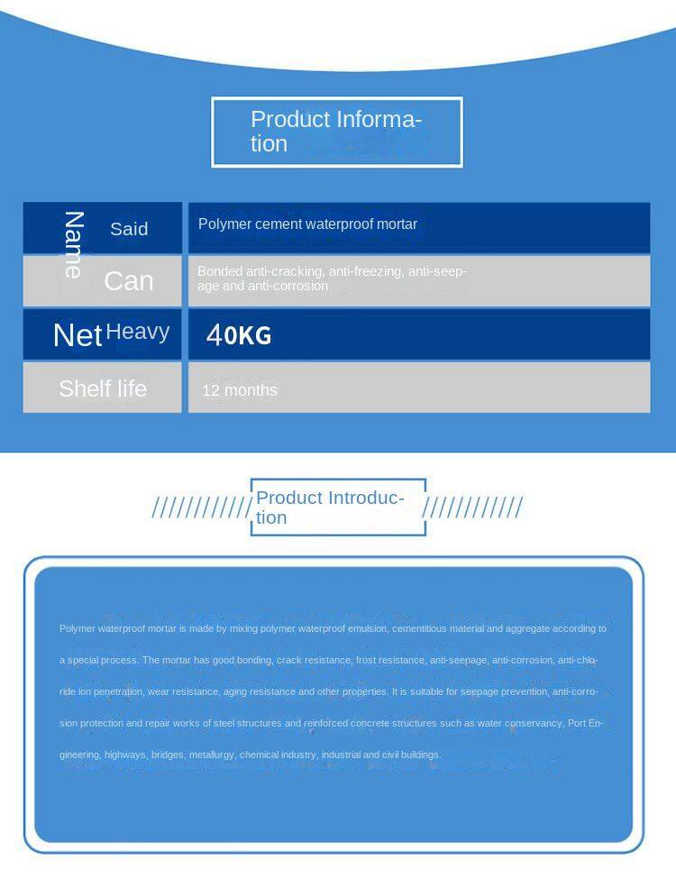 - Polymer Waterproof Mortar, Anti-seepage Bonding Plastering Mortar, Moisture-proof for Construction Projects, Anti-seepage Plastering for Interior and Exterior Walls of Buildings