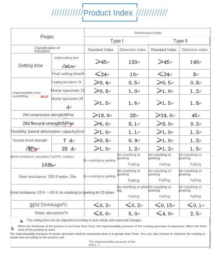Polymer Waterproof Mortar for Waterproofing, Impermeability and Moisture Resistance of Interior and Exterior Walls of Buildings, Wanji Jianye