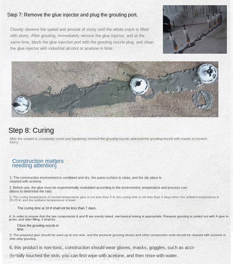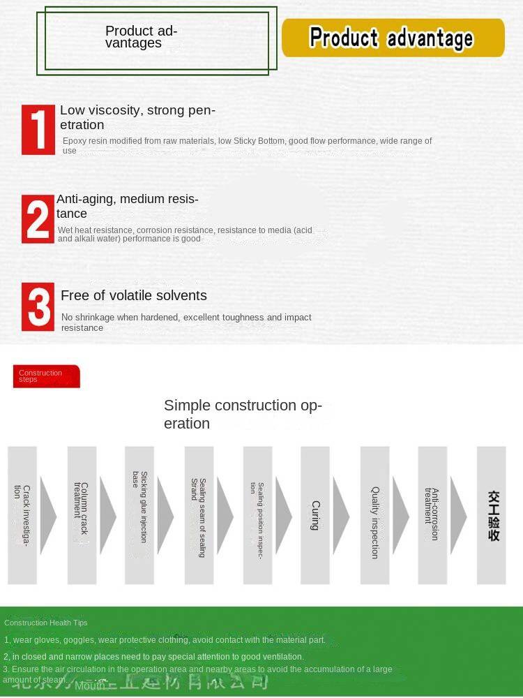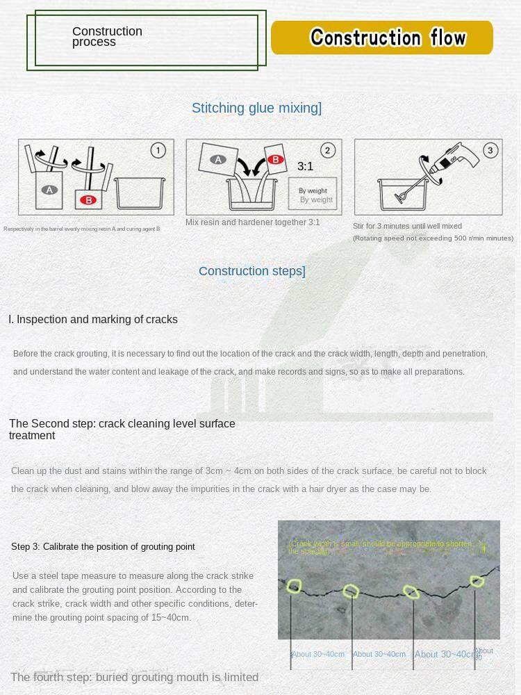 | Application Scope | Reinforcement and glue injection repair for large-scale structural through cracks and deep and meandering cracks. | Shipping Place | Beijing | |