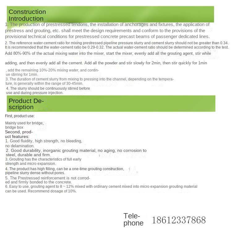 Cangzhou, Prestressed Duct Grouting Material for Bridges, Grouting Agent for Bellows, Manufacturer