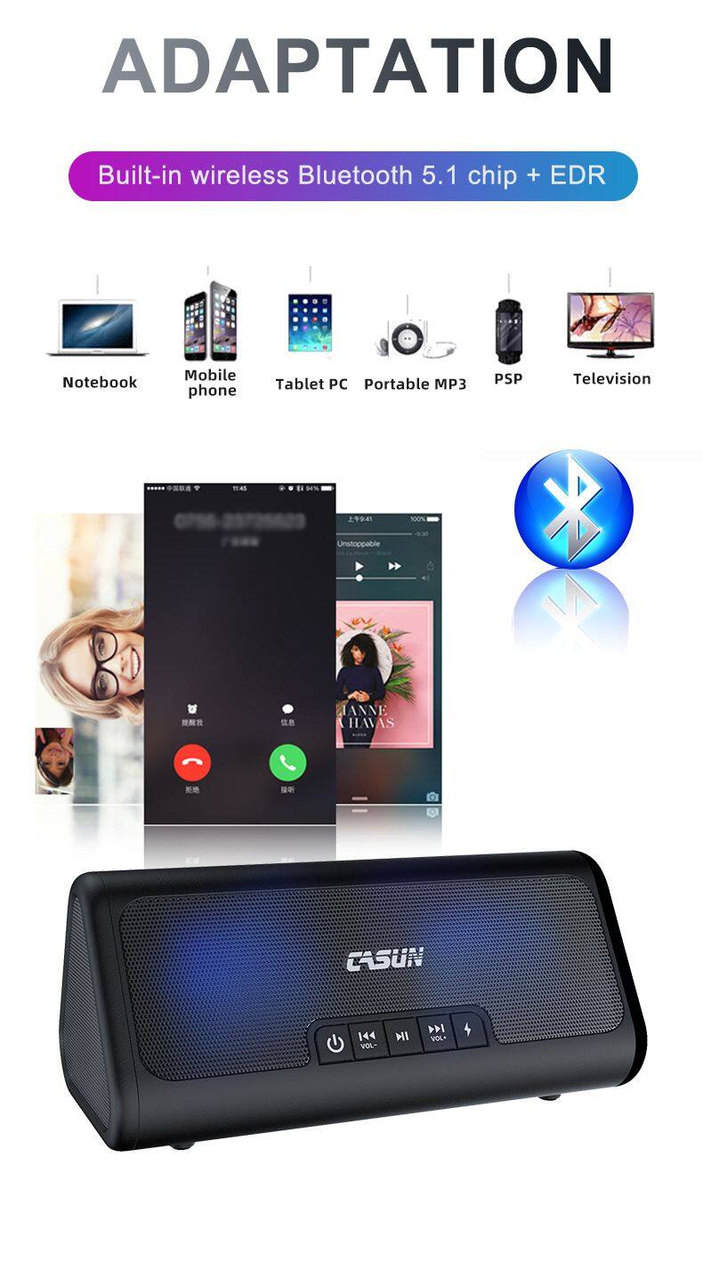 TUV 5.1 Bluetooth Speakers Waterproof Bluetooth Wireless Portable Speaker 20H Playtime Built-in Mic TF Card Port Outdoor Speaker