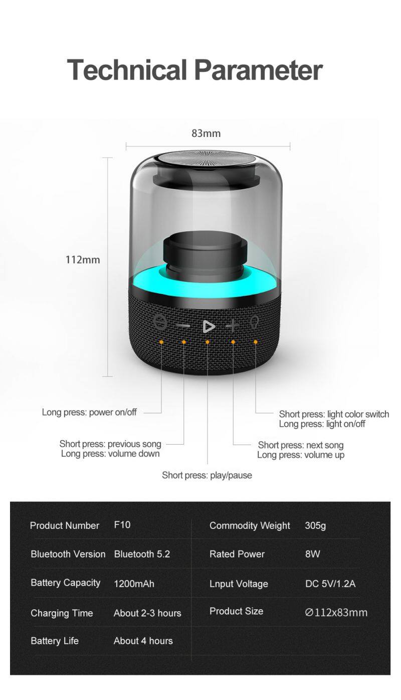 Home > Products > Other > Bluetooth Speaker LED Colorful Atmosphere Light TWS Speaker Transparent Black Battery Plastic Wireless Bocinas Bluetooth Active