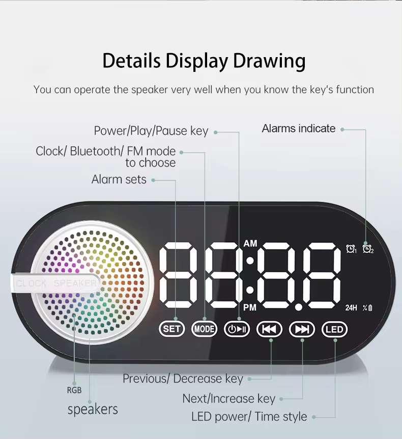 Product Name | Top Sale Smart Clock Speaker Alarm BT Speaker Function RGB Bluetooth Wireless Speaker For Promotion |