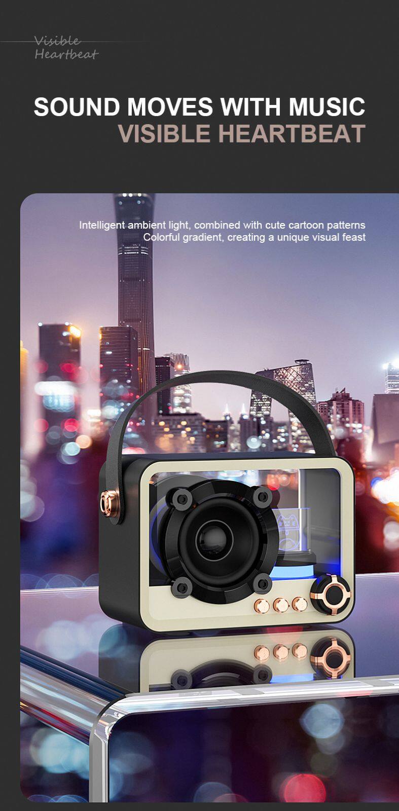 3D Stereo Sound Custom LED Logo New Retro Wireless Bluetooth Speaker With RGB Lights