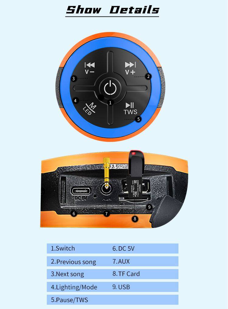 Functions | BT/USB/TF/FM/TWS/AUX | ||||||