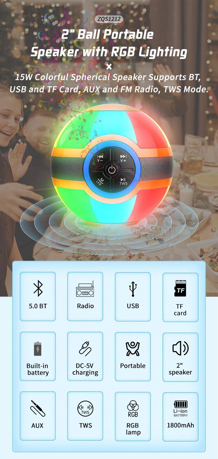 ZQS1202 Portable Wireless Speaker 500MAH Battery Capacity 2 Inch Speaker With Colorful LightNegotiableMOQ: 1 Carton