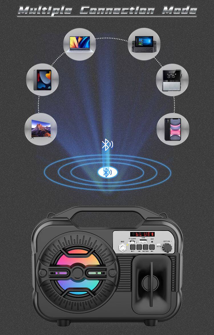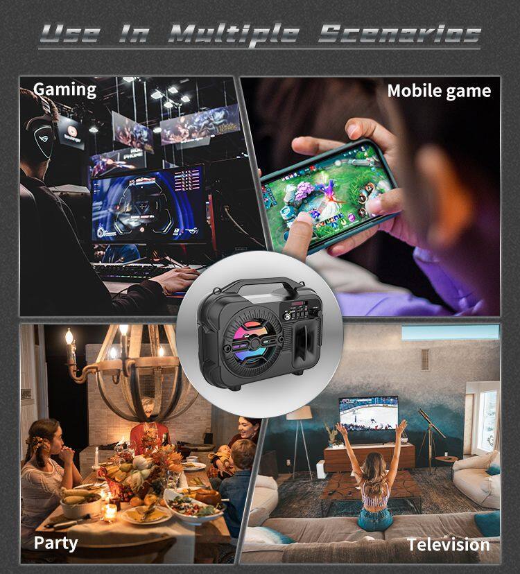 Outdoor Portable Mini Party Stage Pulse Led Light Fm Radio Loud Sound Mic Wireless Speaker